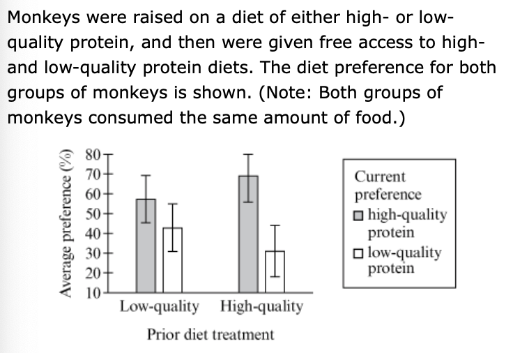 the data indicate that monkeys raised on high-quality protein retained a pronounced preference for high-quality protein
