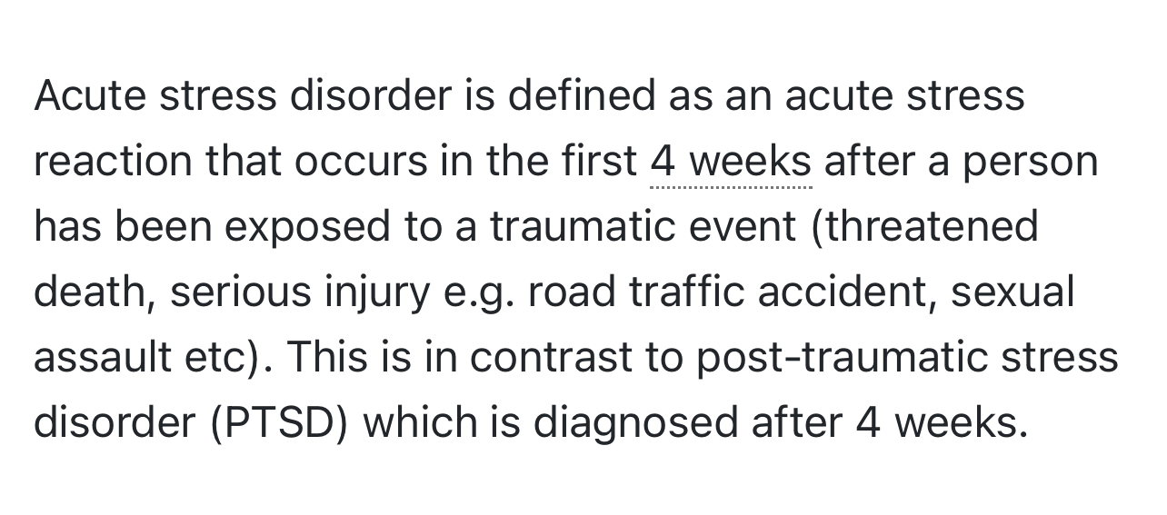 Acute Stress Disorder vs PTSD?