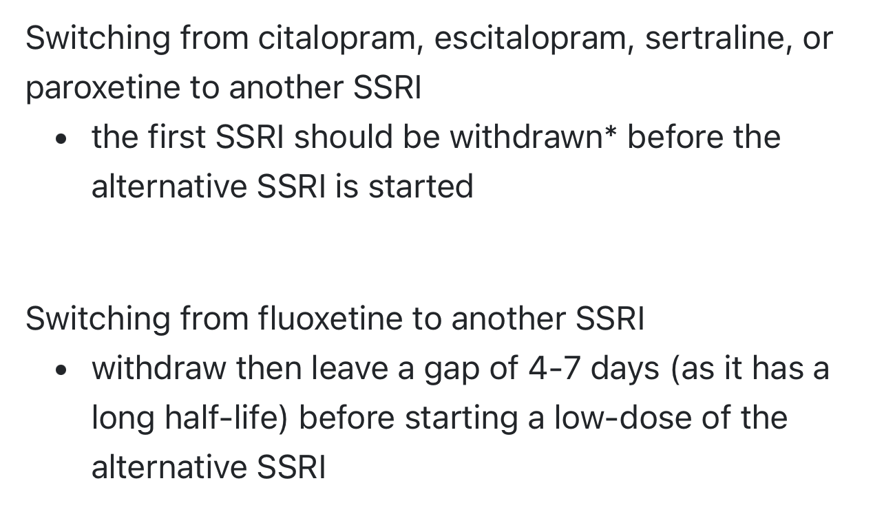 Considerations when switching SSRI medications?