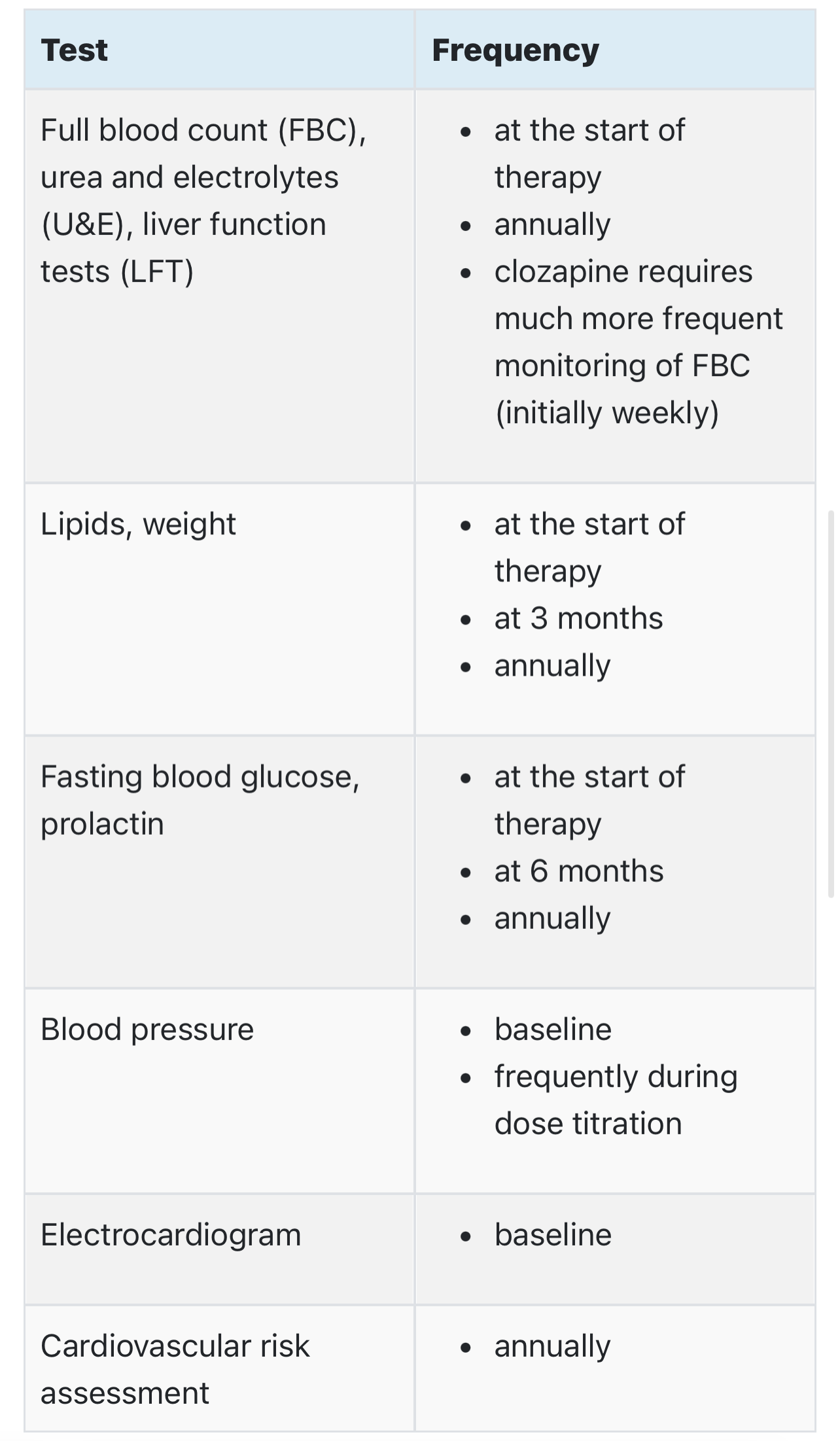 Monitoring requirements in antipsychotic medications?