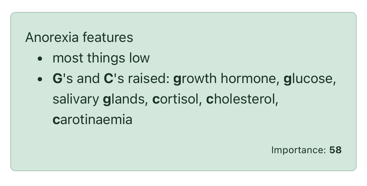 Biochemical features of anorexia nervosa?