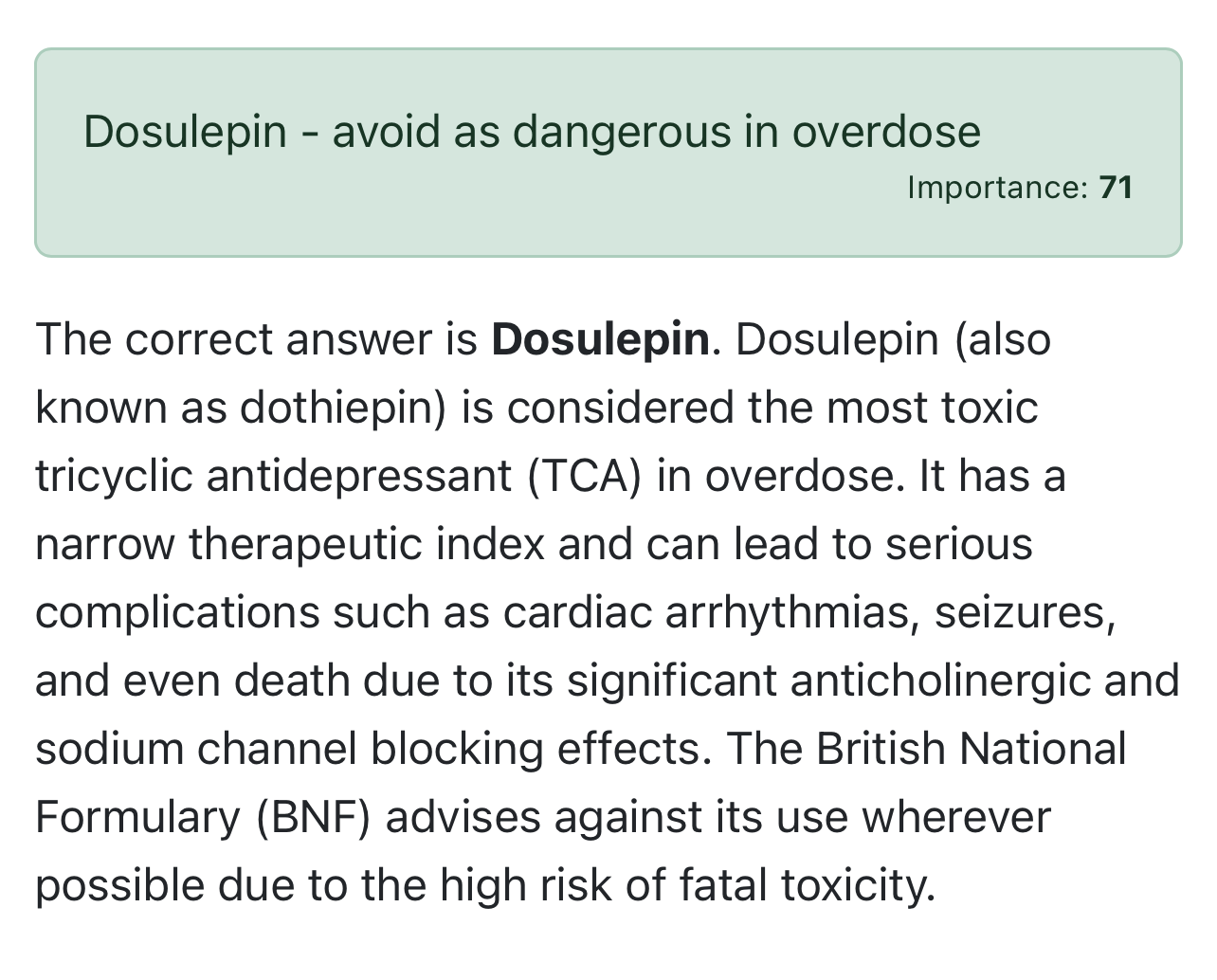 Most dangerous TCA?
