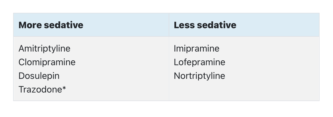 Examples of sedating vs non-sedating TCAs?