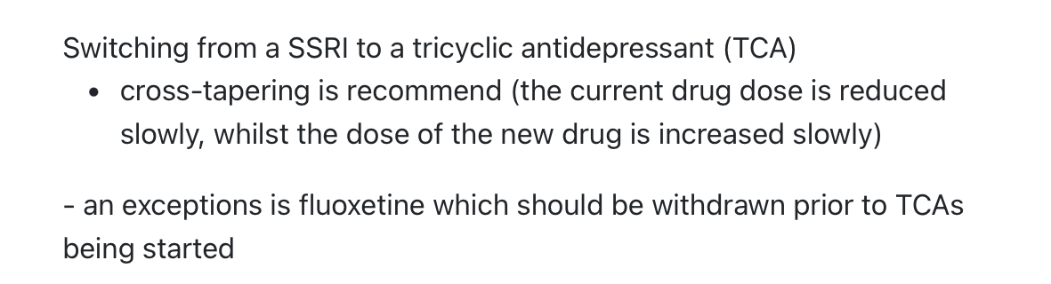 How to switch from an SSRI to a TCA?