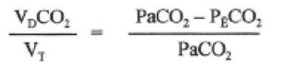 The Bohr Equation (dead space ratio): Deadspace : total ventilation