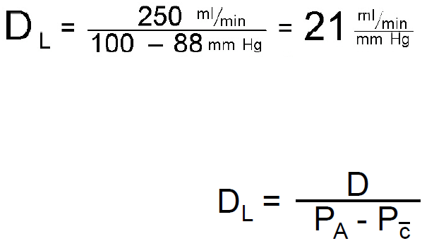 Normal DLO2 = 21 ml/min/mmHg