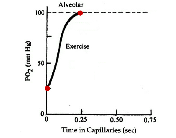 How does exercise affect DL for O2?