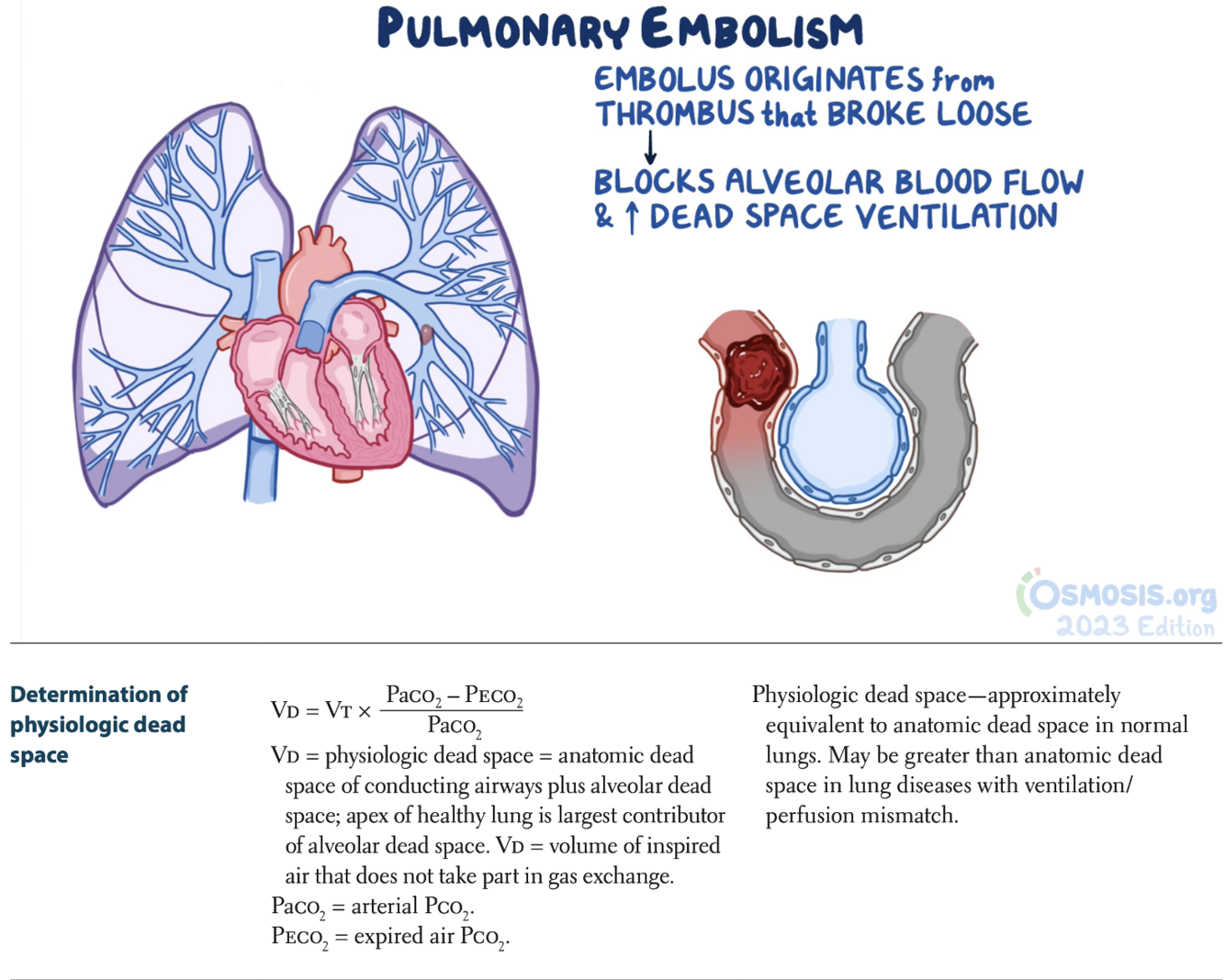 What is the physiological progression of increased dead space secondary to pulmonary embolism?