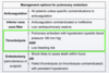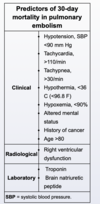 What specific type of shock is associated with pulmonary embolism, what does this indicate about the size of the pulmonary embolism and how does this guide management?