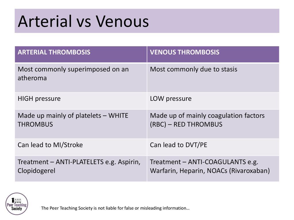 DVT = fibrin and entrapped erythrocytes (red clots). Platelet aggregation is not seen at the site of thombus attachment.