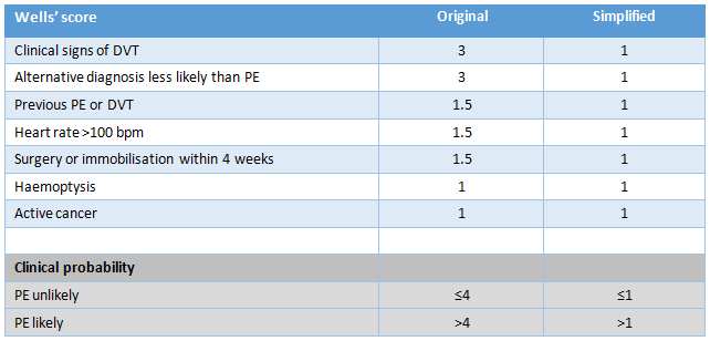 History and examination, followed by 2 level Wells score to estimate clinical probability of PE.