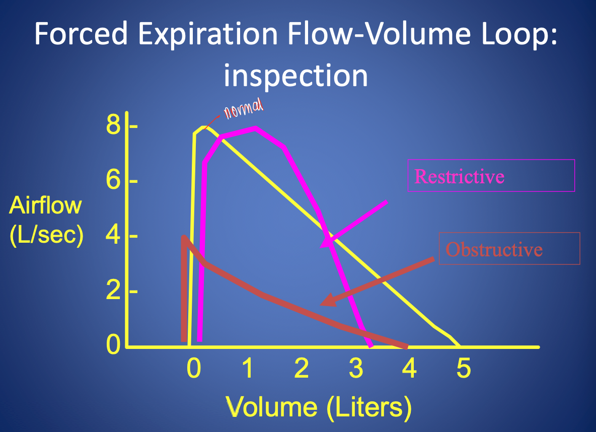Foreced Expiration Test- spirometry is when the patient is asked to inhale maximally then to forcefully expire all air as quickly as possible. what is the FVC and FEV 1?
