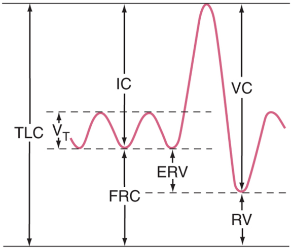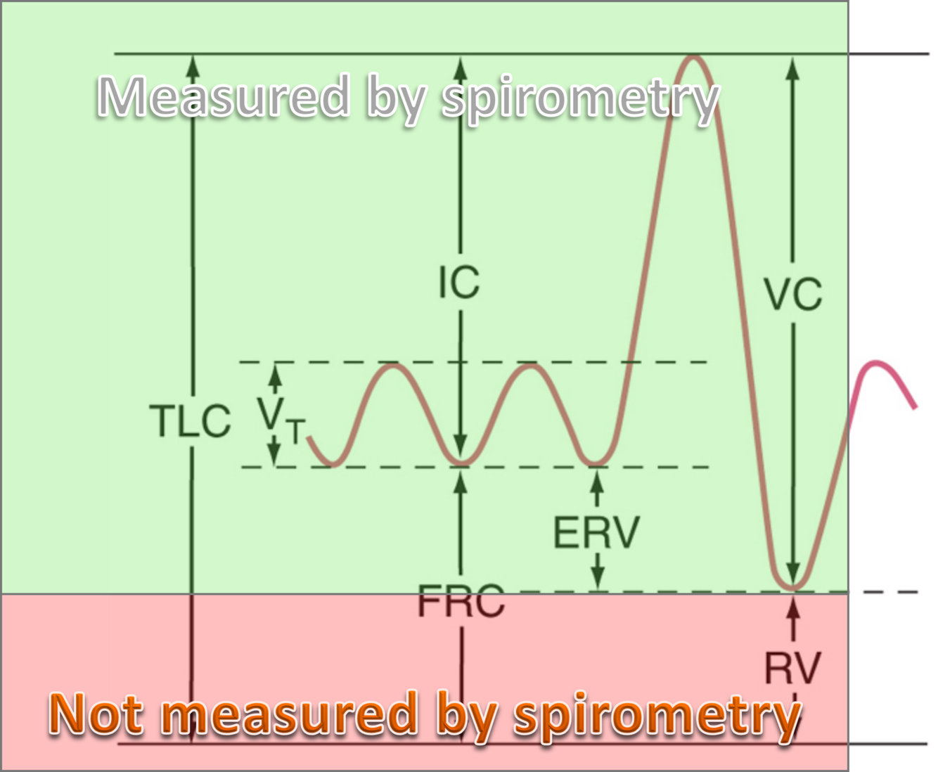 *TLC = inspiratory reserve volume + tidal volume + expiratory reserve volume + residual volume