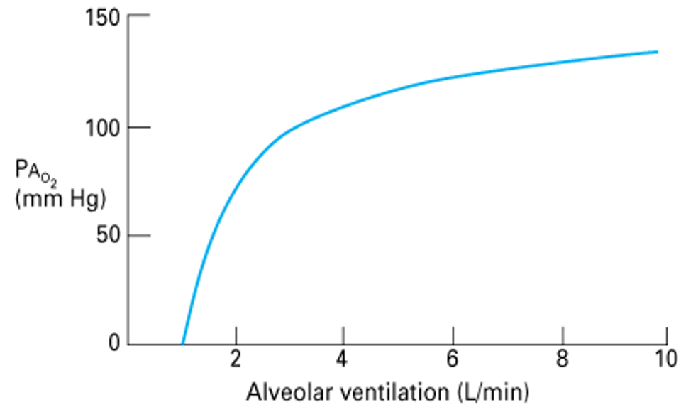 At 4.2 L/min, PAO2 will be about 100 mmHg