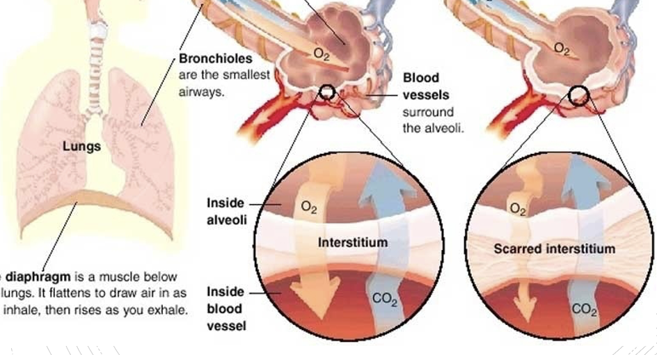What are the effects of scarred interstitium?