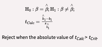 Formulate a null and alternative hypothesis about a population value of a regression coefficient and determine the appropriate test statistic and whether to reject the null hypothesis.