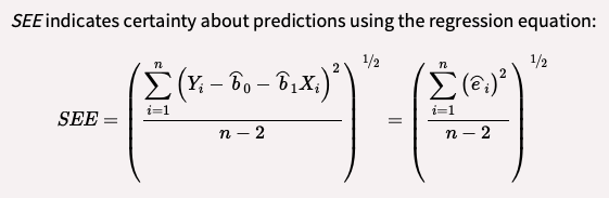 Calculate and interpret the standard error of the estimate (SEE).