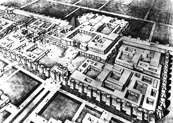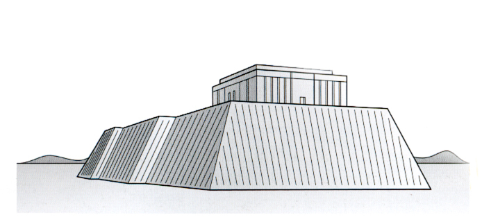 A stepped pyramid form used in ancient Mesopotamia as the platform for a religious building.