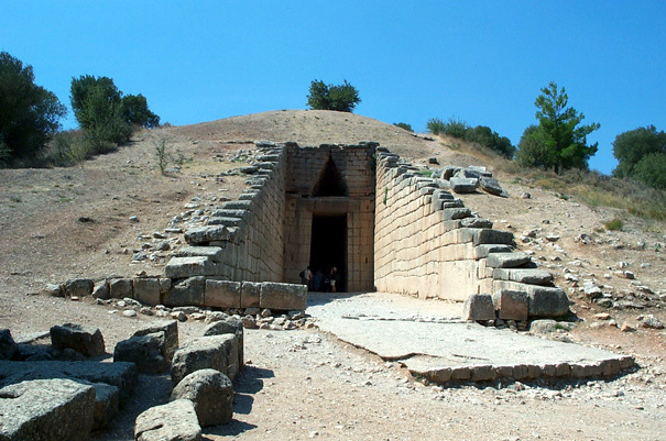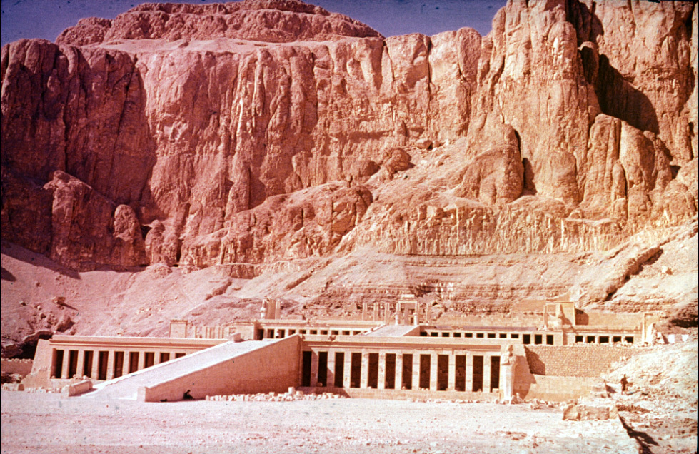 An Egyptian tomb with a flat top and sloping sides, built over a grave shaft