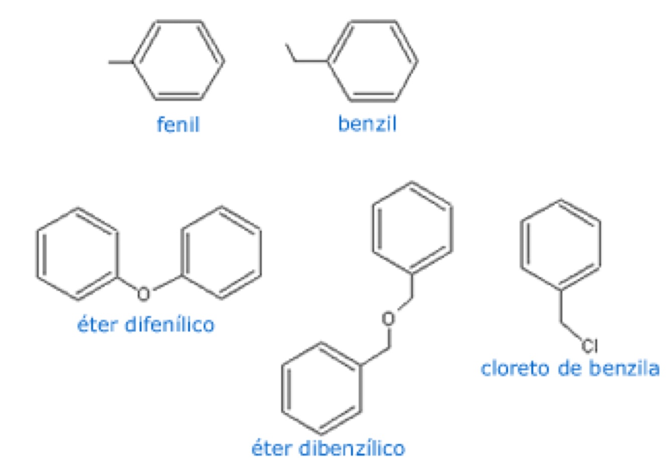 Qual a diferença entre benzil e fenil?