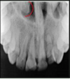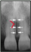thin radiolucent line between maxillary central incisors