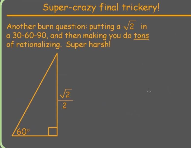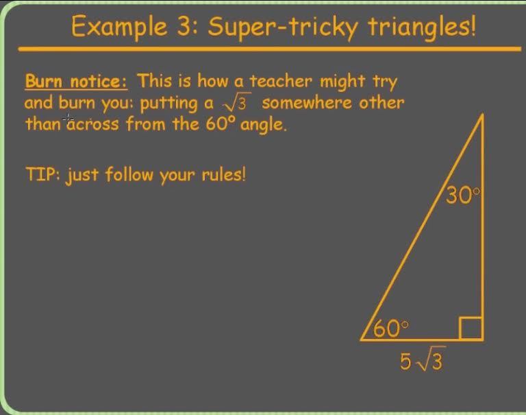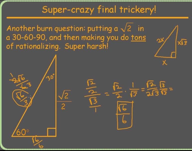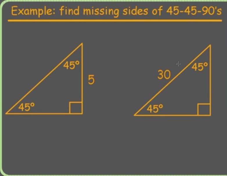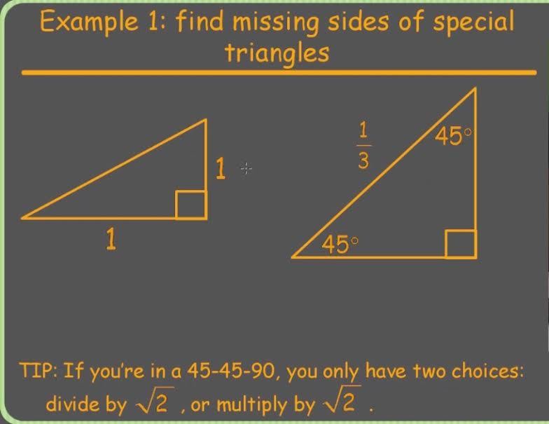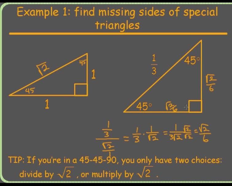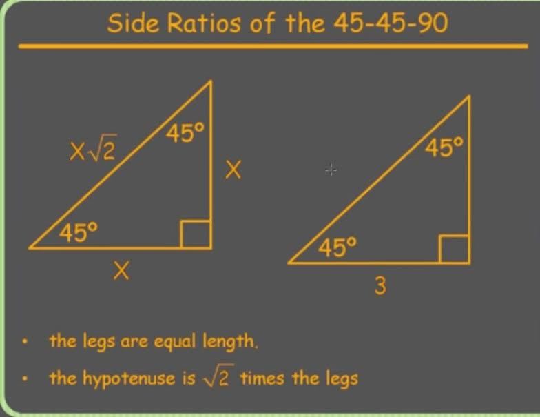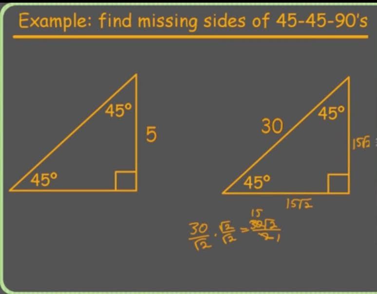 Trigonometry123 > Ratios Solving Special Triangles: 30-60-90 & 45-45-90 > Flashcards