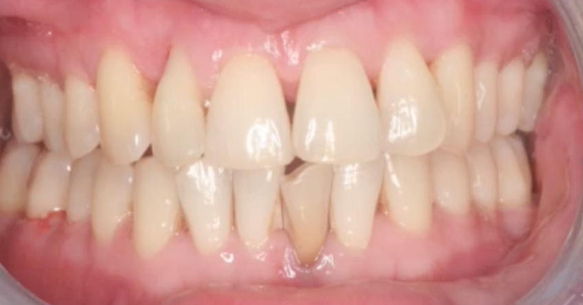 2) gingival shrinkage (recession, gaps between teeth)