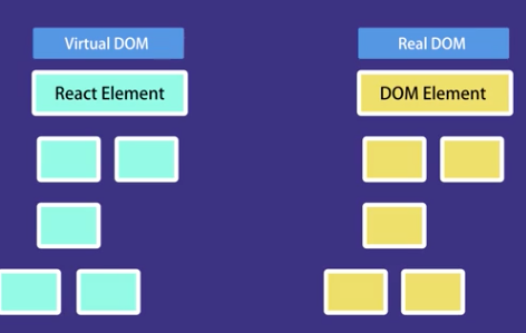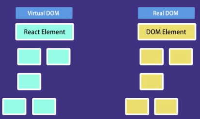 React reacts to state changes (virtual DOM) and automatically updates DOM