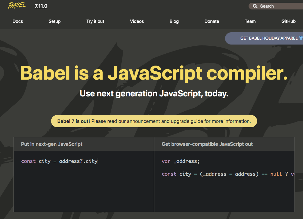 babel - compiler lets us write modern Javascript code that works in older browsersoverride settings/customize?