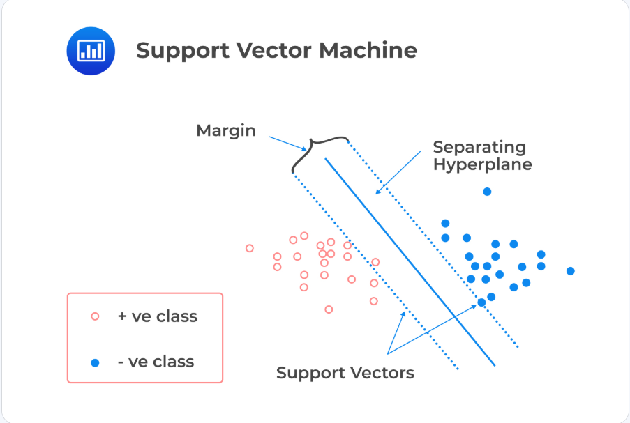 A Support Vector Machine (SVM) is a tool that learns from examples to classify data into categories. You start by giving it examples from two groups. It then finds the best way to separate them using a straight line (or a flat surface called a hyperplane). This line is placed to create the widest possible gap between the groups, making it easier to decide where new examples belong. This method works best when the data can be clearly separated with a straight line — known as linear separability.