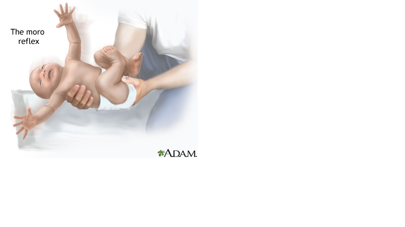 Baby spreads arms out, then back in, then cries Disappears between 4-5 months