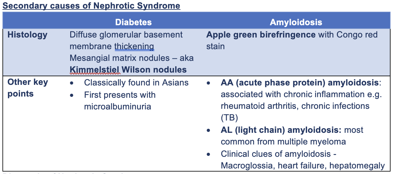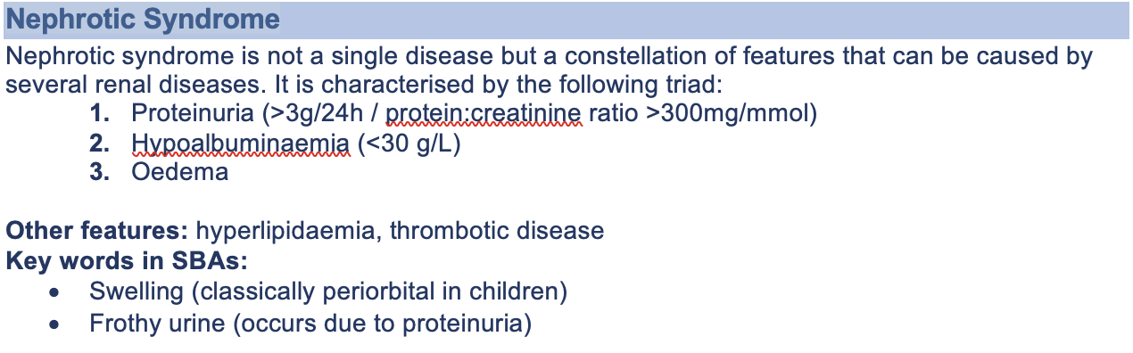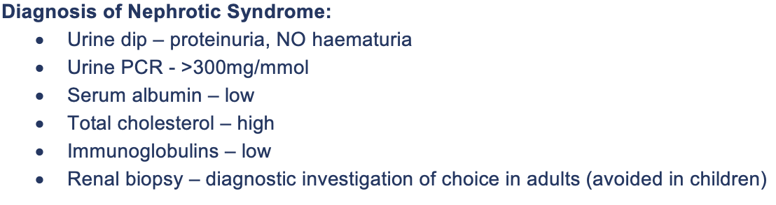 Nephrotic syndrome key features