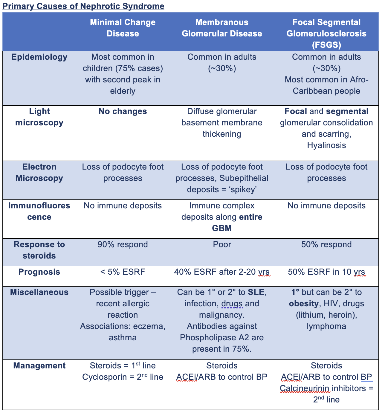 Primary causes of nephrotic syndrome