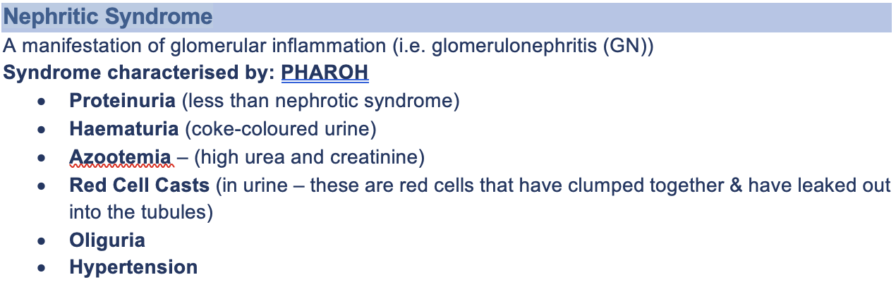 Key features of nephritic syndrome
