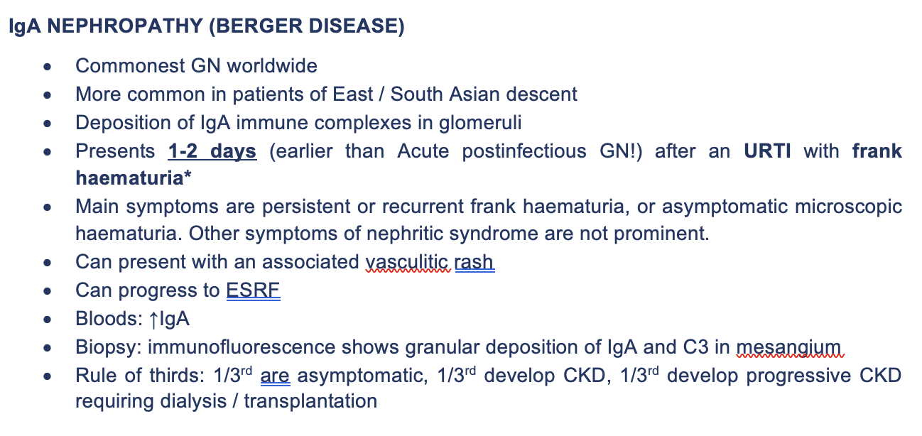 Summarise IgA nephropathy