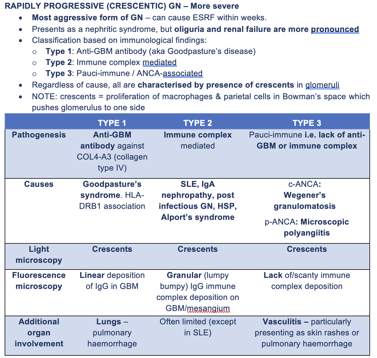 Summarise rapidly progressing crescentic glomerulonephritis