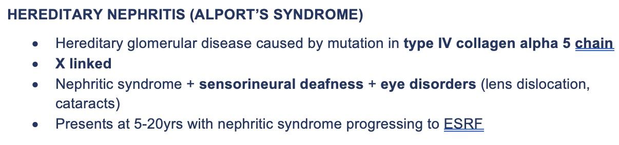 Summarise hereditary nephritis