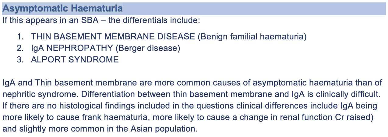 Summarise asymptomatic haematuria