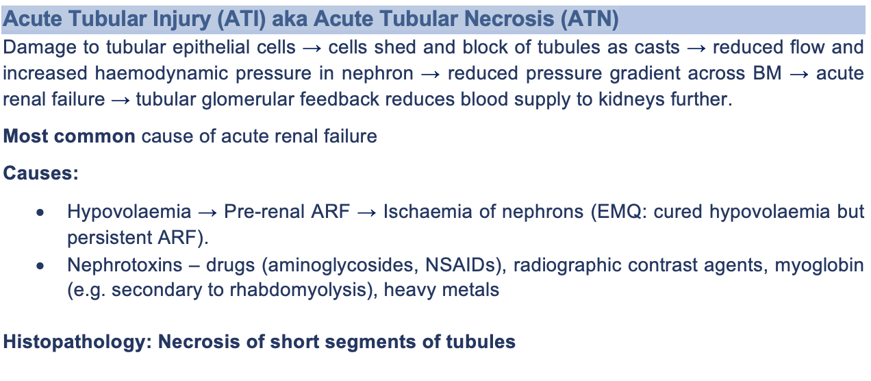Summarise acute tubular injury and acute tubular necrosis