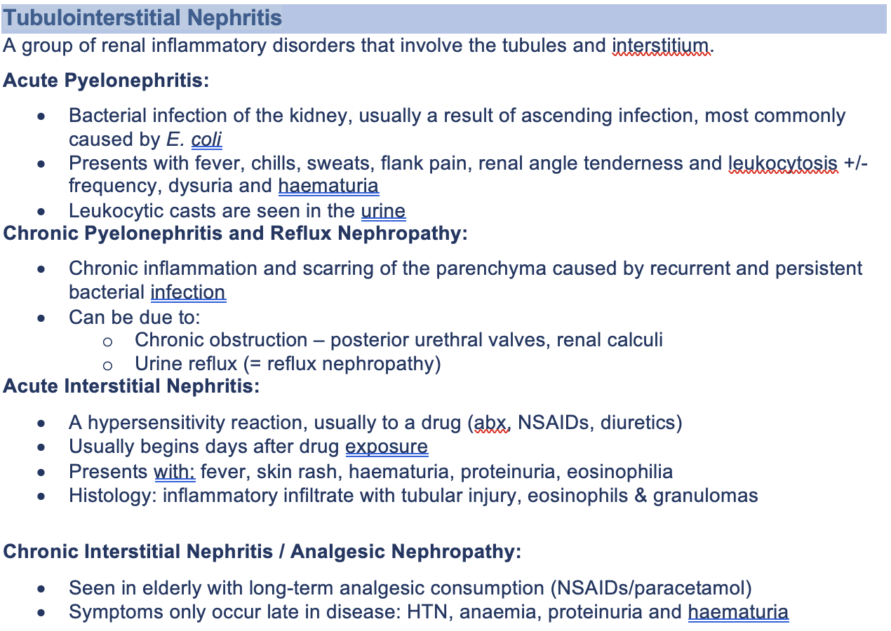 Summarise tubulointerstitial nephritis