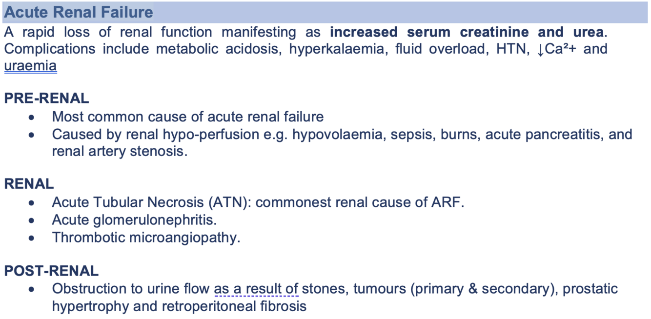 Summarise acute renal failure