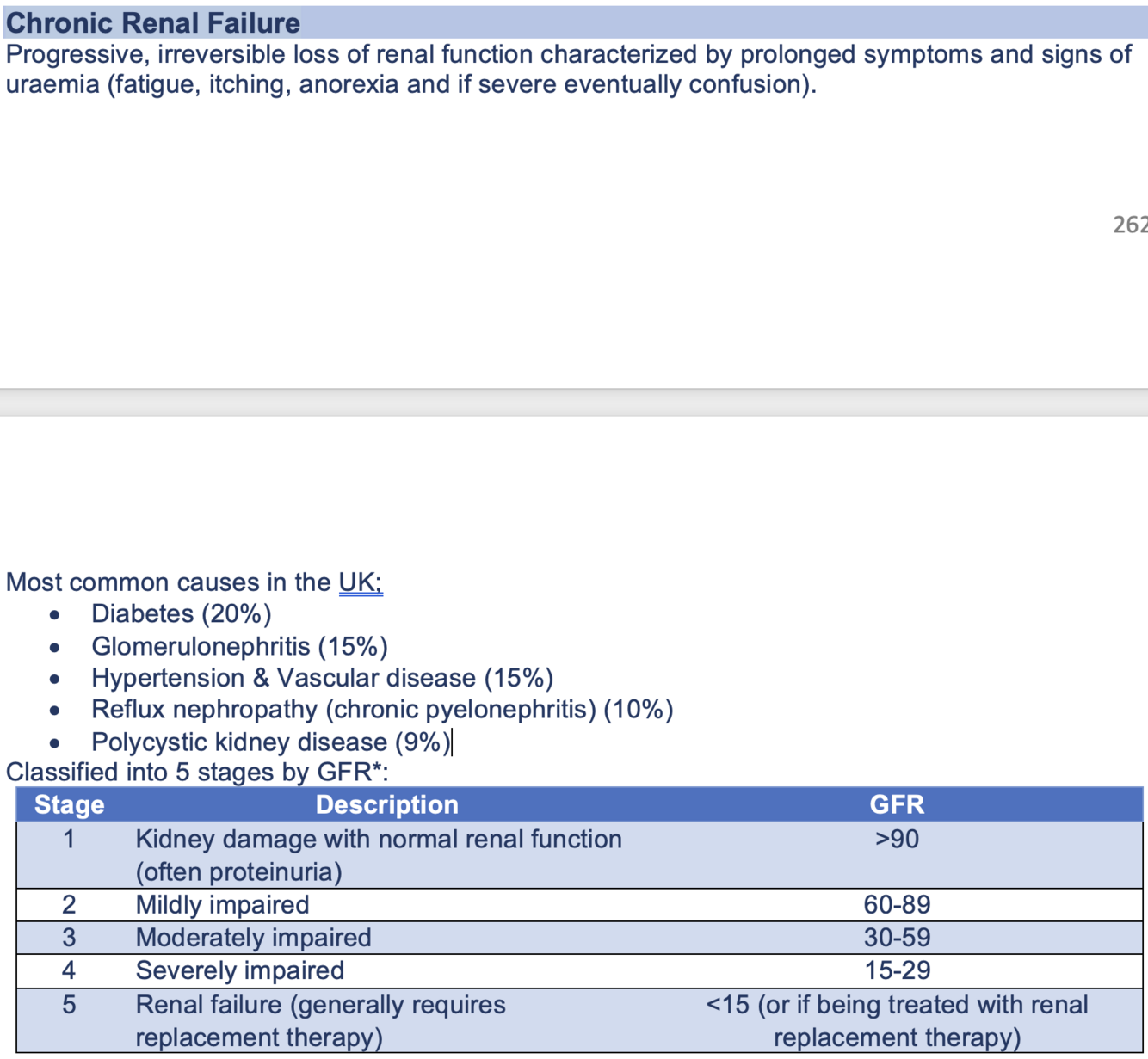 Summarise chronic renal failure