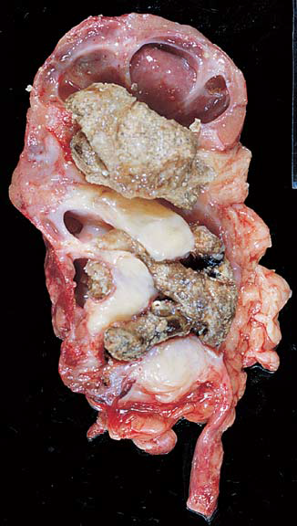 Stones w/i the collecting system of the urniary tract