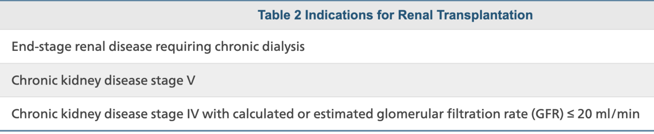 Indications for Renal Transplant