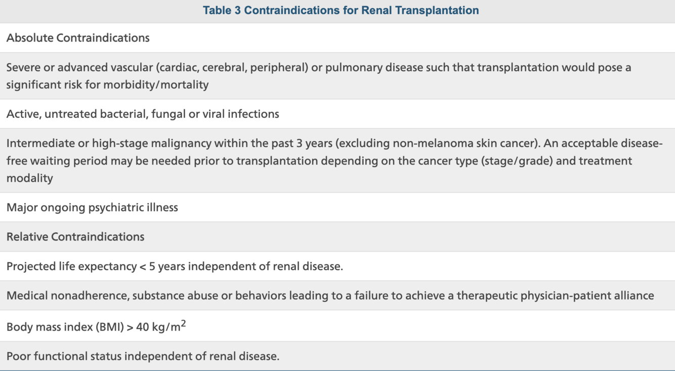 Contraindications to Renal Txp