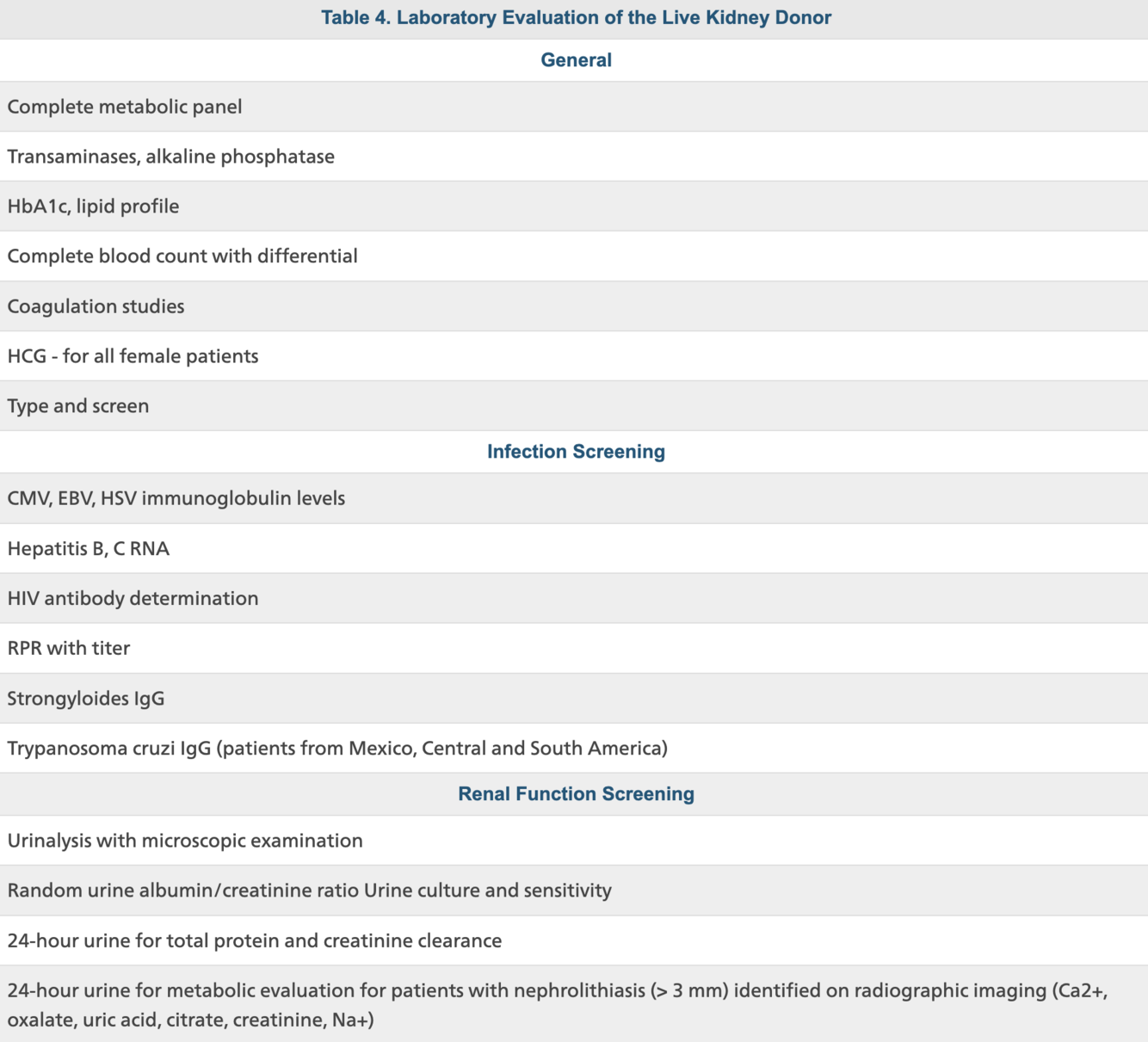 Live donor evaluations: