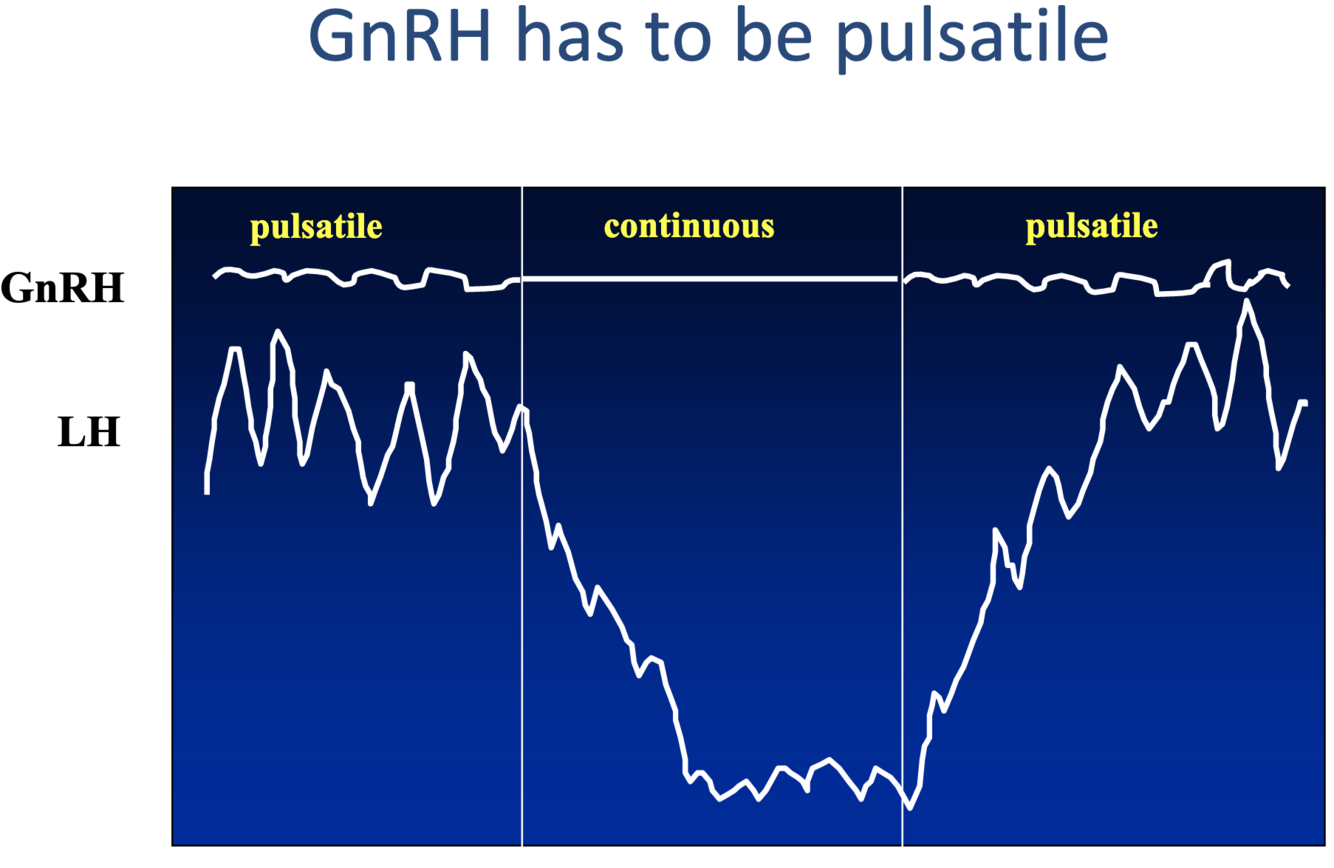 When GnRH release is continuous it leads to a fall in LH release. Whereas when it is pulsatile, LH release remains consistently high.