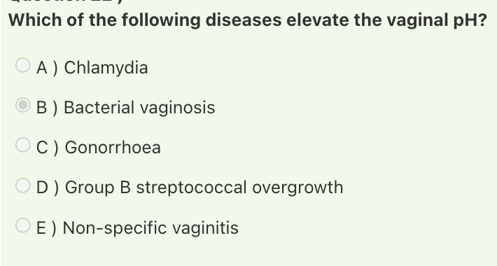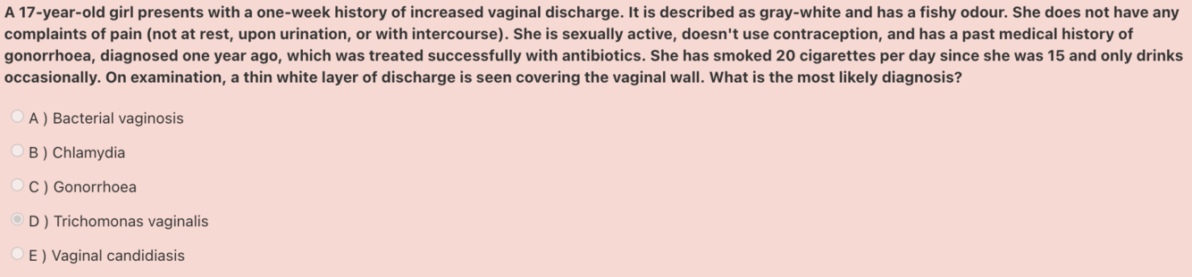 Answer: Bacterial vaginosis