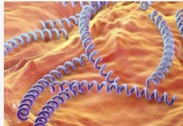 Treponema pallidum is a spirochaete bacterium with subspecies that cause syphilis.