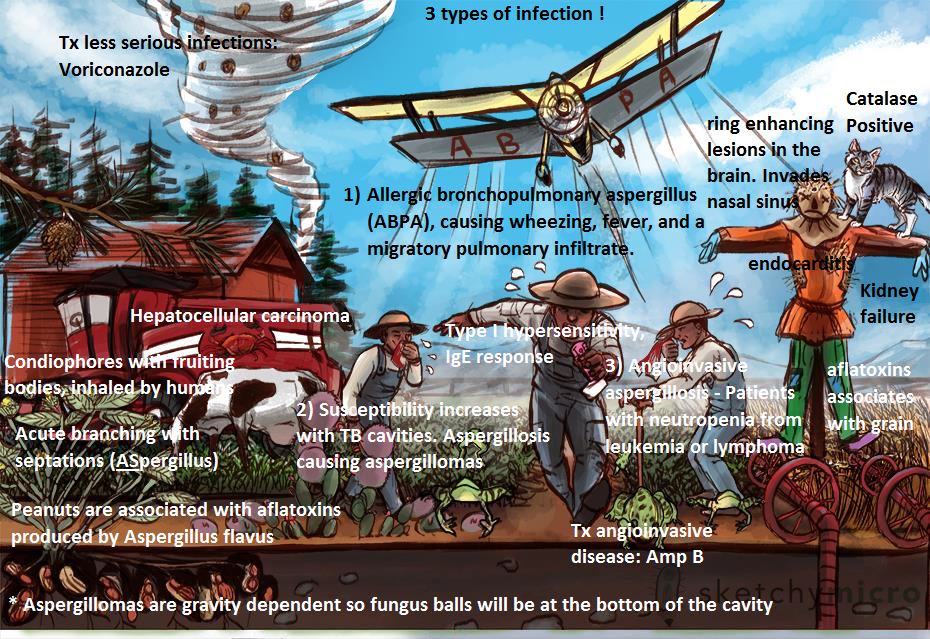 * Aspergillus also catalase (+). Catalase (+) ↑ risk of Chronic Granulomatous Disease (CGD).